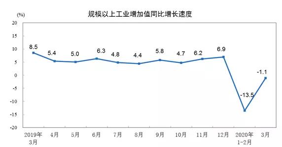 3月份,規(guī)模以上工業(yè)增加值同比實(shí)際下降1.1%(以下增速均為扣除價(jià)格因素的實(shí)際增長率),降幅比1-2月份收窄12.4個(gè)百分點(diǎn)。從環(huán)比看,3月份,規(guī)模以上工業(yè)增加值比2月增長32.13%。一季度,規(guī)模以上工業(yè)增加值同比下降幅度8.4%。