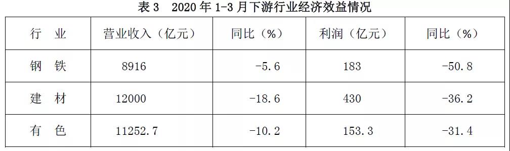 1、2020年下游鋼鐵、建材、有色等行業(yè)需求量下降